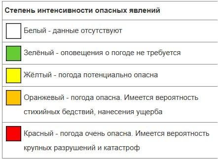 Мы часто слышим фразы: «Объявлен желтый уровень погодной опасности», «Объявлен оранжевый уровень погодной опасности», но не знаем, о чем речь. Ловите таблицу, которая объясняет что это за уровни погодной опасности. Теперь, надеюсь, нам будет понятнее оповещения МЧС.