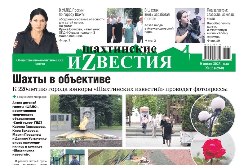 Сегодня среда, 9 июля, в свет вышел новый номер «Шахтинских известий»