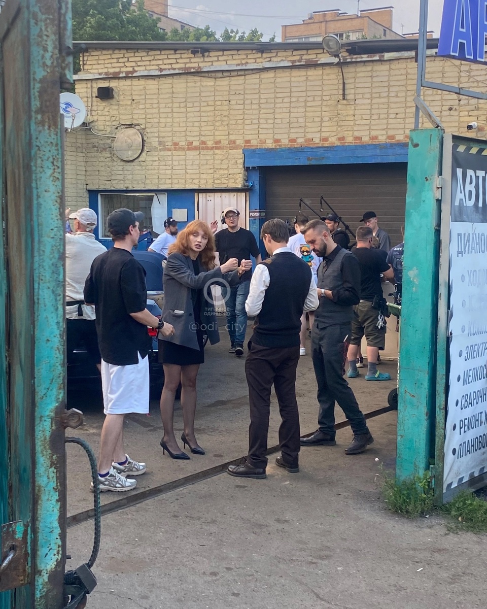 Вдоль железной дороги раскинулся киногородок. На территории автосервиса заметили актеров Екатерину Вилкову и Ивана Добронравова.
