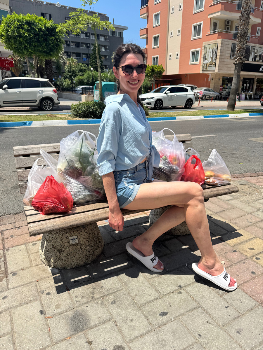 📍 Мой улов с турецкого рынка | Июль 2025 Просто не могу не поделиться! Если вы, как и я, питаетесь правильно или следите за фигурой — вы сейчас удивитесь. Сегодня мы закупились овощами и фруктами на рынке в Турции почти на неделю — и вот наш чек 👇 🛍 Что почём? 💱 Курс лиры на сегодня: 1 TRY = 2,04 руб 🧺 ИТОГО: целый стол свежих продуктов — на 715 лир 💰 Это примерно 1459 рублей! В Москве за такие деньги можно взять только пару пакетов из супермаркета — и то не факт, что будет вкусно и по сезону. 🥗 Почему это находка для тех, кто худеет? Овощи — это не просто «на гарнир». Это настоящая база для вкусного, полезного и сытного питания. Особенно летом, когда не хочется тяжёлой еды. ✅ Минимум калорий — можно есть тазиками ✅ Много клетчатки — насыщает и улучшает пищеварение ✅ Витамины и минералы — поддерживают кожу, обмен веществ, иммунитет ✅ Много воды — особенно важно в жару ✅ Идеально сочетается с белками: мясо, рыба, яйца, бобовые 👩🏻⚕️ Как нутрициолог скажу: Хочешь ху
