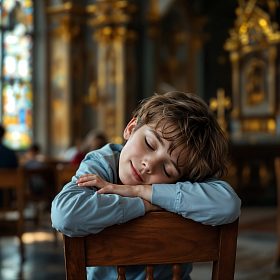 Сегодня на вечернем богослужении в Храме Святых Отцов Семи Вселенских Соборов, мой сын, отрок болящий Георгий (ему 8 лет) первый раз уснул во время службы.
