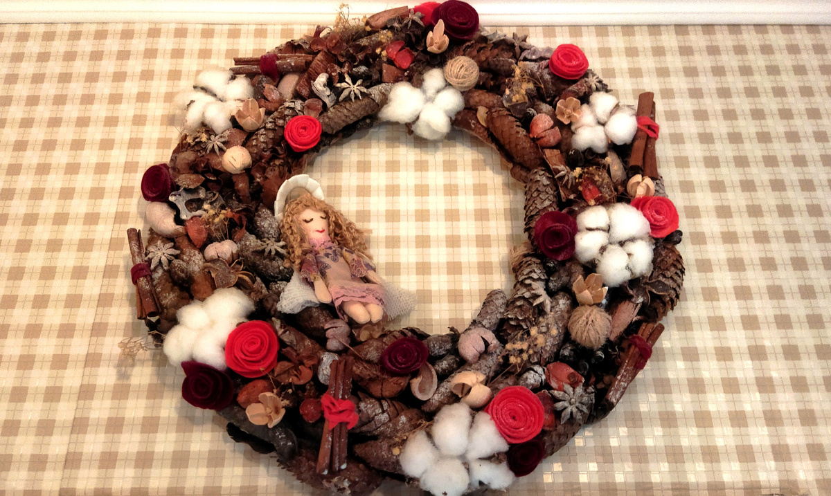 Давно вынашивала идею написать пост о своей коллекции ангелов. Вынашивала, вынашивала и, наконец, выносила! Как эта коллекция прижилась в моей квартире, какие ангелы прилетели ко мне на постоянное местожительство – об этом я напишу следующий пост. Потому что в одном рассказе всё не расскажешь. Много слов получится. А сегодня в качестве анонса я расскажу о двух экспонатах моей коллекции, расскажу отдельно от остальных. Они этого заслуживают! Потому что сделаны умелыми руками и с любовью! Это ангелы-сонники. Они мне сон навевают! Хотя в такую погоду, полную дождей, полумрака и монотонного стука капель по карнизу никакие сонники не нужны. Потому что спать хочется всегда и везде. Где сел, там и заснул. Погоды такие! Поэтому в такие погоды два моих сонника отдыхают, спят, не обращая на меня никакого внимания. Вот спит девочка-сонник. Её сшила моя невестка. Катюшины золотые руки сделали и этот роскошный венок, на котором девочка так удобно устроилась. Эту замечательную композицию я разместил