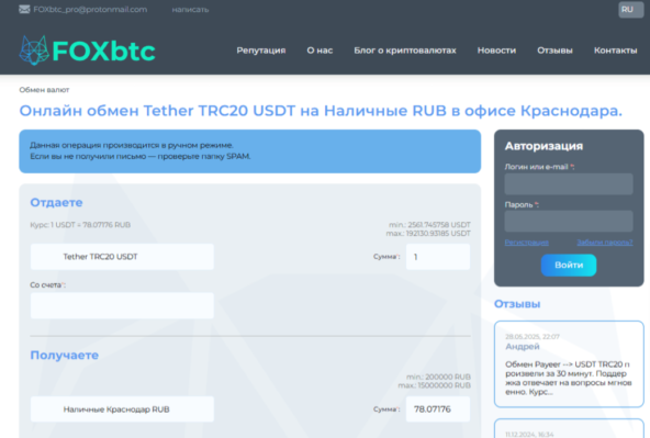 Криптообменник Краснодара - FoxBTC