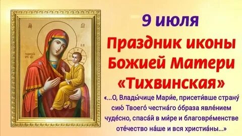 9 июля 2025 года - среда, седмица 5-я по Пятидесятнице ТИХВИНСКОЙ ИКОНЫ БОЖИЕЙ МАТЕРИ В этот день Русская Православная Церковь чтит память: — Преподобного Давида Солунского (Фессалоникийского) (ок. 540) — Перенесение мощей преподобного Нила Столобенского (1995) — Священномученика Георгия Степанюка, пресвитера (1918) ------------------------------------------- Поздравляем всех именинников с днем Ангела! https://azbyka.ru/days/2025-07-09 ------------------------------------------- 🍵 ПОСТ И ТРАПЕЗА 9 июля 2025 г., среда, день постный ------------------------------------------- 💠ИСТОРИЧЕСКИЕ СОБЫТИЯ — 9 июля 1762 г. в России произошел дворцовый переворот 1762 года — 9 июля 1953 г. родился архиепископ Яготинский, викарий Киевской епархии, Серафим (Демьянив) ------------------------------------------- 👀 ИНТЕРЕСНЫЕ ФАКТЫ ИЗ ЖИТИЯ СВЯТЫХ И ИСТОРИИ ПРАЗДНИКА — Тихвинская икона Божией Матери, по преданию, одна из икон, написанных святым апостолом и Евангелистом Лукой. — В V в. из