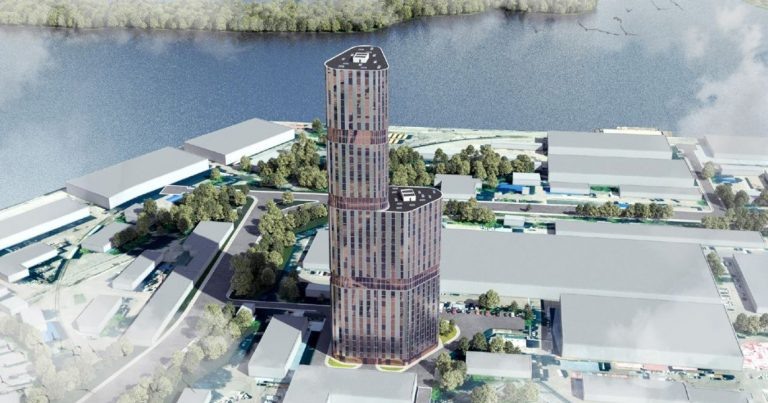В «Южном порту» — одной из самых амбициозных площадок для редевелопмента в Москве — активно идет трансформация бывших складов и промкорпусов в новые жилые кварталы, отели и офисы, и к ним присоединяется еще один проект. Во 2-м Южнопортовом проезде планируется построить деловой центр площадью более 50 тыс. кв. м, который будто только что выпал из чьего-то кармана: то ли бизнес-центр, то ли гигантский вейп. На участке, где запланировано строительство, до сих пор стоит старый административно-производственный корпус 1978 года постройки. Ни в какие крупные проекты комплексного развития территорий (КРТ) этот клочок земли не входил, однако недавно он получил разрешение на возведение бизнес-центра, а теперь, по всей видимости, его ждет продажа профильному девелоперу, сообщает канал «Стройки — и точка». И хотя конкретные сроки реализации не озвучены, можно быть уверенными: «Южный порт» медленно, но верно обрастает не только башнями, но и собственными архитектурными метафорами. А вейп-башня, воз