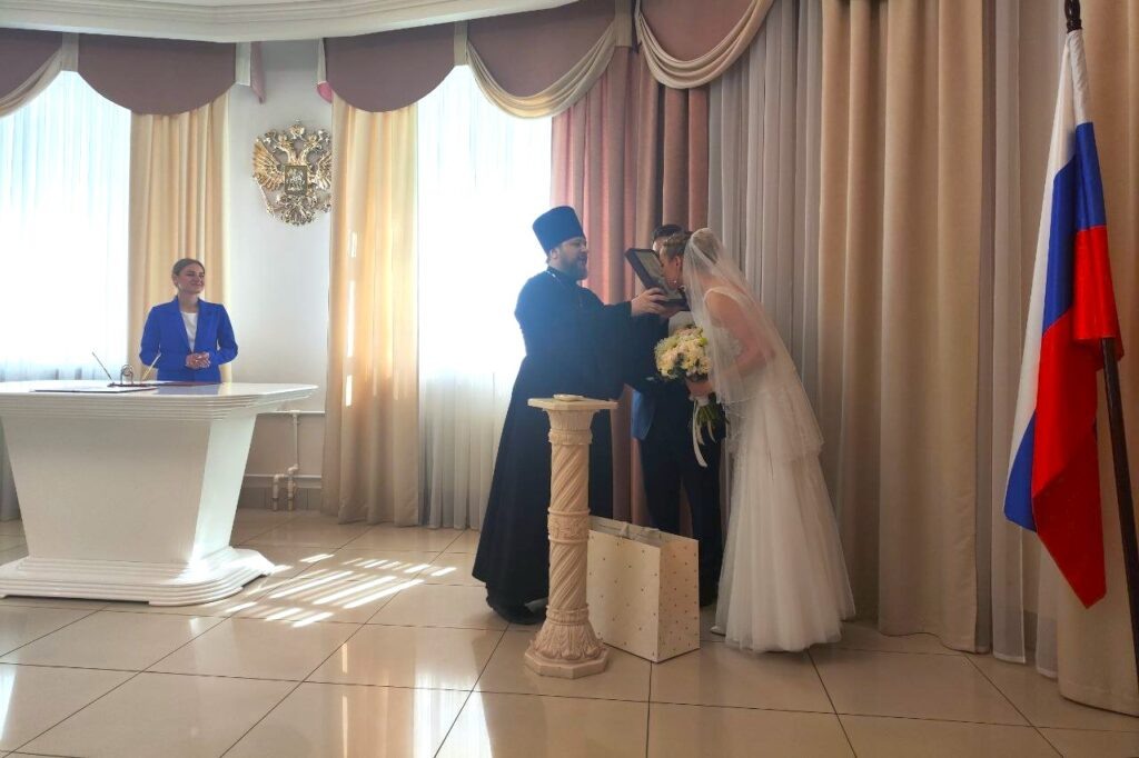 8 июля 2025 года, в праздник святых благоверных князей Петра и Февронии, к которому приурочен День семьи, любви верности, в Лобненском отделении ЗАГС состоялось поздравление молодоженов. В поздравлении приняли участие глава администрации А.В. Кротова и иерей Сергий Прудников, ответственный по вопросам семьи, защиты материнства и детства в Лобненском благочинии. Мероприятие состоялось по приглашению заведующей Лобненским отделением ЗАГС И.А. Антоненковой. Они поздравили молодоженов, зарегистрировавших свой брак в этот день. Иерей Сергий Прудников пожелал молодоженам являть жертвенную любовь друг ко другу, благословил их образом святых благоверных князей Петра и Февронии Муромских и вручил эту икону в дар.