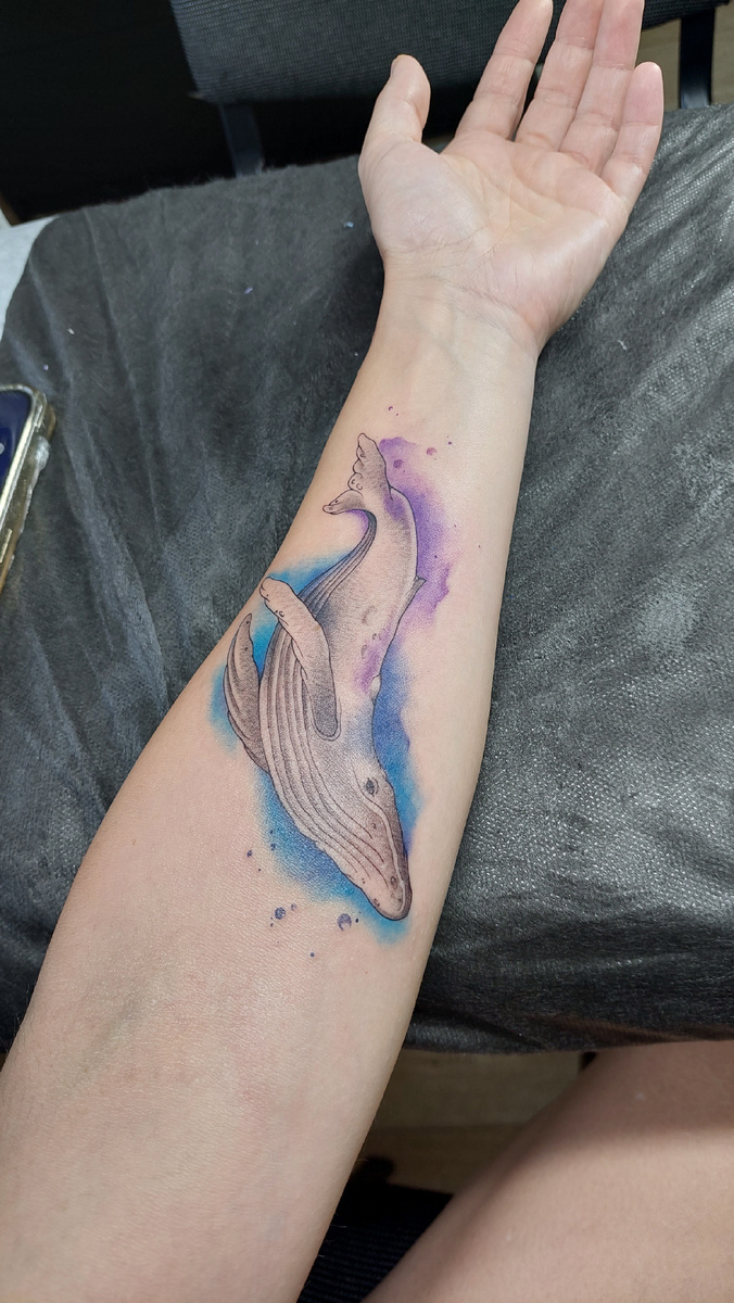 Если учесть, что кожа уже горела от боли после нанесения чёрной краски- просто от лёгкого прикосновения, то представить себе, каково это, когда по свежей ране снова проходит машинка с десятками иголок, несложно. Это не просто боль, это испытание на выносливость. В какой-то момент я поняла: хватит. Мы остановились на половине акварели, только одна рука была закончена. Остальное позже, когда тело отдохнёт, а я снова наберусь смелости. Но главное не это. Главное - я начала. Мечты обязаны сбываться. Пусть не сразу и не до конца, но в любом возрасте, в 10, 20 или 40 лет, они должны быть осуществлёнными.