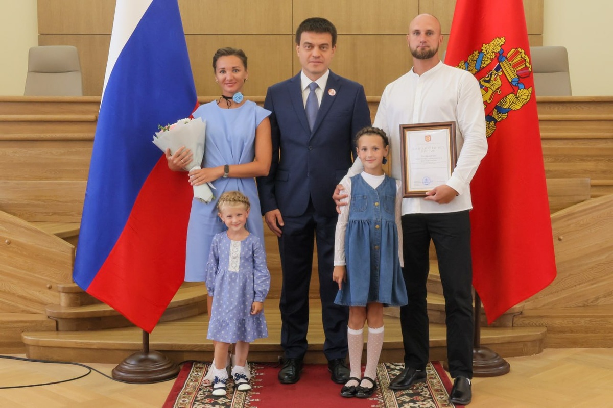 В День семьи, любви и верности губернатор Михаил Котюков наградил семью Сотниковых из Лесосибирска - победителей регионального конкурса