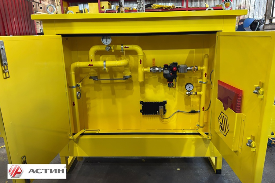 Компания «Астин групп» изготовила и поставила в адрес заказчика газорегуляторный пункт шкафного типа ГРПШ-VENIO-А-35-1У1-Д-ЭО с одной линией редуцирования и интегрированным узлом коммерческого учета газа. ГРПШ произведен в соответствии с ТУ 4859-005-60792585-2009.