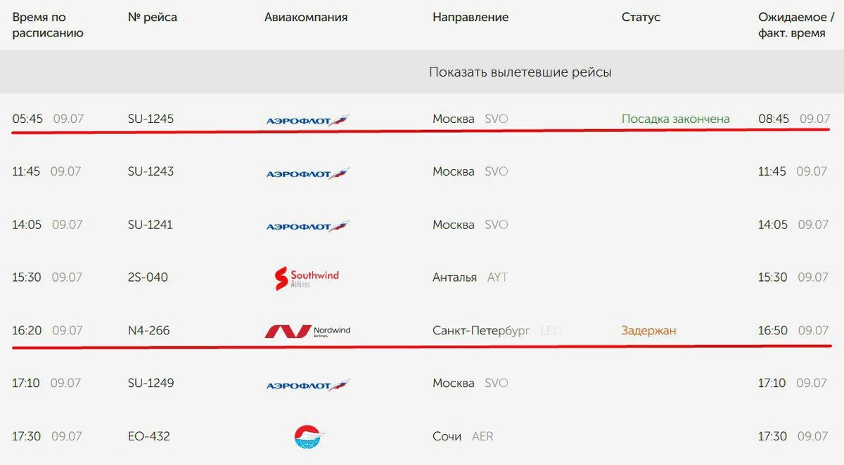 🔸 Борт из Москвы прибыл вместо 04:45 в 07:33. Соответственно его вылет обратно в столицу перенесли с 05:45 на 08:45.