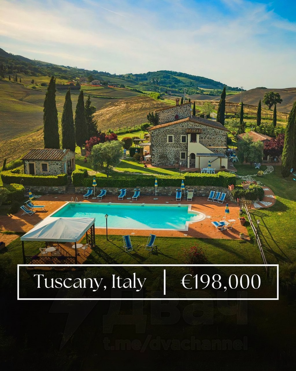 🪖 Вилла в Тоскане дешевле однушки в Москве В Италии продаётся огромный дом с бассейном, отдельным въездом и видом на холмы — всего за €198 000 (~18,2 млн ₽). 📌Локация — Тоскана. Рядом озеро, виноградники, горы, воздух как в фильмах.