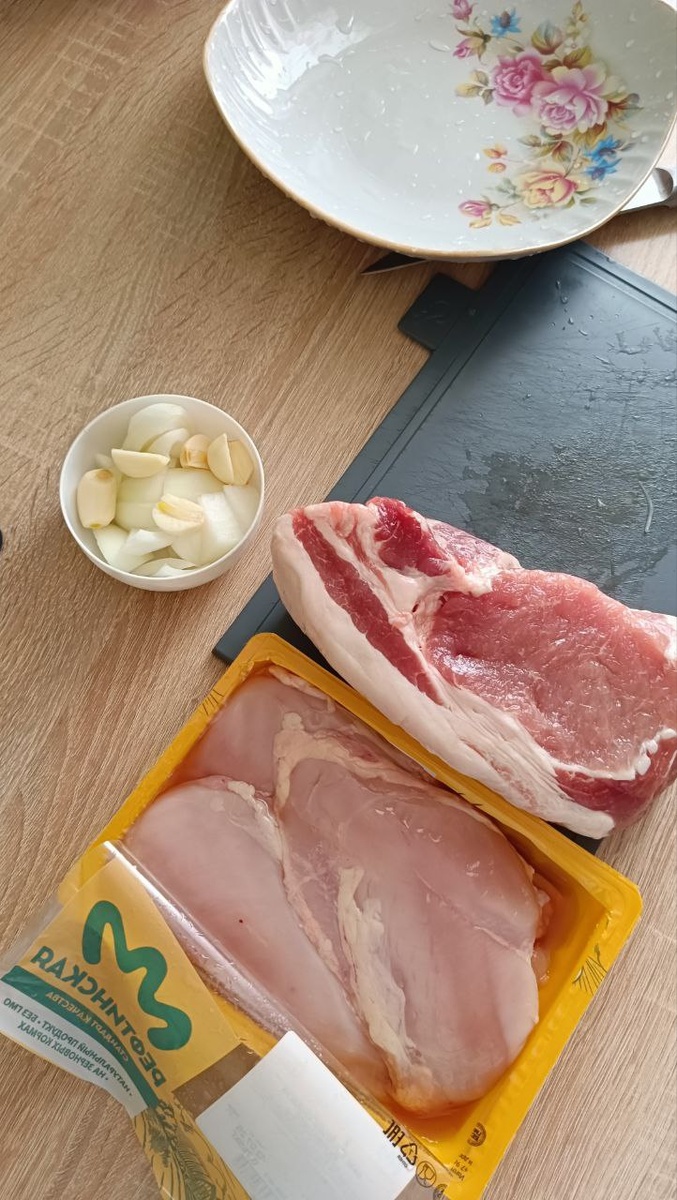📝Рецепт Котлетки, фарш из двух видов мяса ➡️ Продукты: ✅ Курица, филе ✅ Свинина, карбонат ✅ Лук репчатый ✅ Чеснок ✅ Молоко ➡️Приготовление: Перекрутить мясо сразу с чесноком и луком, потом для нежности добавить молоко, посолить по вкусу. 💗У меня получилось на 3 💗приготовления. Брала 1 💗кг свинины и 800 г 💗курицы