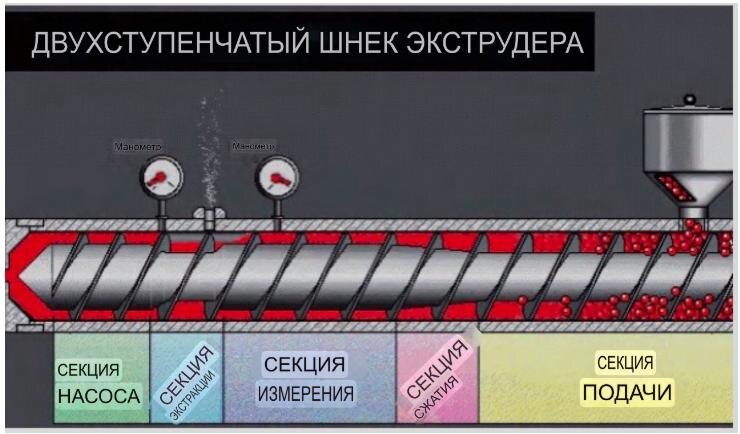 Дегазация: ключ к качеству полимерного продукта!🔑 Дегазация, или удаление летучих веществ, — это процесс, необходимый для удаления нежелательных газов из расплава полимера. Эта важная процедура осуществляется через вентиляционное отверстие в экструдере, расположенное ниже по потоку от головки. Хотя большинство одношнековых экструдеров не используют вентиляцию, в некоторых моделях она есть. 🚫Зачем нужна дегазация? Удаление газов критически важно перед головкой, так как они могут вызывать дефекты в экструдате. Наиболее распространённый дефект — вспенивание.🧼 Хотя вспененные экструдаты могут быть желательными в некоторых случаях, нежелательное вспенивание требует предварительного удаления газов. Другие дефекты, вызванные газом, могут включать: - Пузырьки - Шероховатость поверхности 🚨Причины появления нежелательных газов Нежелательный газ может попадать в полимер по ряду причин: - Влага, превращающаяся в пар 💧 - Разложение компонентов материала при высоких температурах 🔥 - Побо