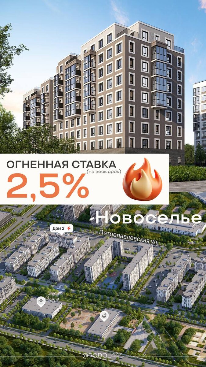 На очереди один из проектов в локации Новоселье. Застройщик сделал возможность взять квартиру по семейной ипотеке 2.5% на весь срок! 🤩 Также, можно обменять свою квартиру для покупки новой в этом проекте. Выкупает квартиру застройщик💸 Мои контакты: ✍️ @podol444 / +79817564831
