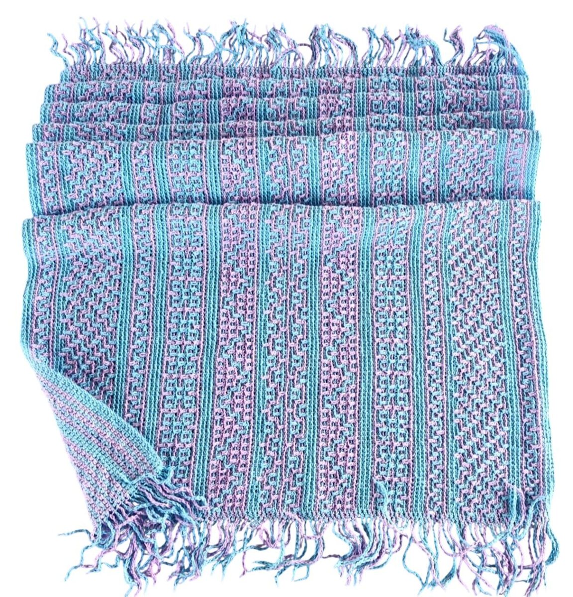 Полотенце с бахромой-косичкой. Новости наших чатов Ну это уже тянет на пляжное полотенце! Людмила из чата «Мозаичное полотенце» покащала нам свою работу🔥 Обратите внимание на бахрому, она вяжется сразу: начинаем с набора воздушных петель, а потом приступаем к вязанию ряда. Очень удобно. Людмила: «Хочу показать вам полотенце) Размер 120х45 см. Пряжа Пехорка Конопляная (30 % конопля, 70 % хлопок), цвета 05-голубой и 178- св. сиреневый, вес 240 г. Узоры взяты из книг Самый нескучный плед и Самый родной узор. Крючок Хаманака двусторонний (3.0)». Мозаичное полотенце — чат и схемы: https://t.me/polotenze_mosaic