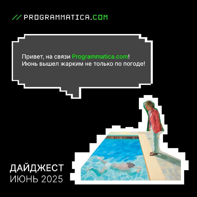 🎨 Июньский дайджест Programmatica.com Ровно год, как мы выпускаем дайджест! Для нас он стал архивом воспоминаний и побед. Спасибо, что каждый месяц разделяете их с нами. Шоу будет продолжаться! Июньские новости уже на нашем сайте и в email-рассылке. Оставляй заявку на сайте, чтобы получать свежие новости и анонсы digital-мероприятий на почту💚 Ждали лето? 🏆 — Ура, поздравляю! 😎 — Читаю с первого дайджеста 🍾 — Желаю еще много выпусков ❤️ — Спасибо! #дайджест ПОДПИСАТЬСЯ | @programmatica_com