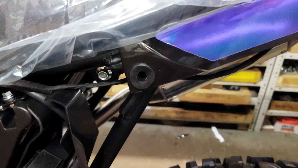 Берём пластик и болты с шайбами. Для установки необходимо снять сиденье и приподнять бак.