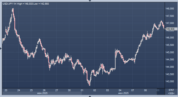 Рынки готовятся к новым торговым заявлениям Трампа. Доллар растёт по отношению к иене на фоне зашедших в тупик торговых переговоров между США и Японией. Источники сообщают, что ЕС может добиться освобождения от американских пошлин. Протокол заседания ФРС будет опубликован позднее в среду График доллар/иены интервалами в 60 минут В среду курс доллара достиг максимума более чем за две недели по отношению к иене. Президент США Дональд Трамп заявил, что сделает новые торговые заявления после того, как введёт 25%-ные пошлины для Японии и других торговых партнёров. Во вторник курс доллара укрепился по отношению к основным валютам после угроз Трампа ввести пошлины, которые должны были вступить в силу 1 августа. Однако позже он заявил, что готов продлить их, если страны предложат свои условия. В социальных сетях Трамп сообщил, что в среду будут сделаны заявления о «минимум семи странах, имеющих отношение к торговле», не раскрывая подробностей. Также он пригрозил ввести 50%-ный тариф на импорти