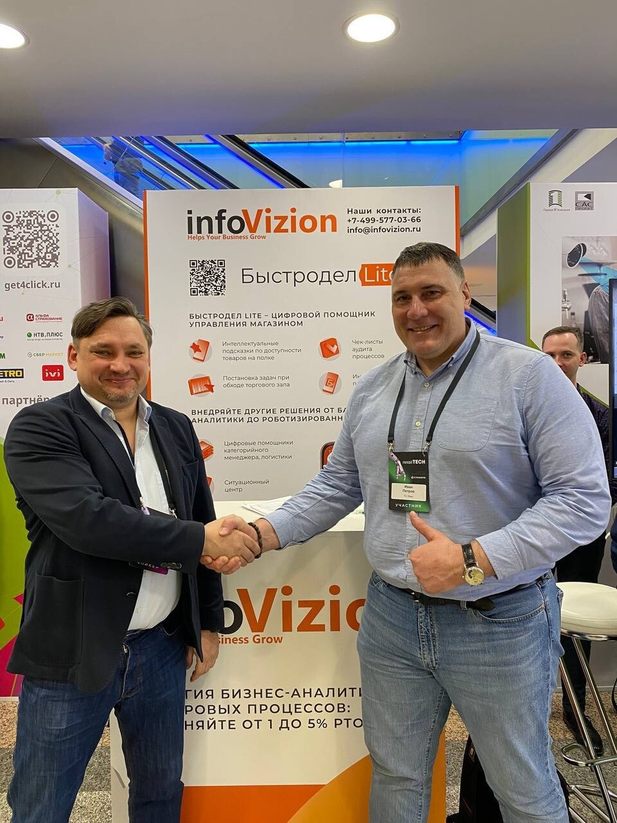 Более 100 магазинов сети расположены в Белгородской области. InfoVizion внедрит в магазинах мобильное приложение для организации процессов проверки товаров и актуализации цен, остатков и выкладки. Быстродел будет ежедневно отправлять в магазины интеллектуальные подсказки по ситуациям, требующим внимания сотрудников. Это позволит компании: 🔹решать проблемы с доступностью товаров на полке; 🔹поддерживать актуальными цены и остатки; 🔹эффективно проводить промо. Директора магазинов, в свою очередь, смогут ставить в мобильном приложении задачи по найденным при обходе торгового зала проблемным товарам и следить за выполнением. Результаты внедрения опубликуем на сайте. Рады быть партнёром Retail TECH. Благодарим организаторов за профессиональный подход, практическую пользу и возможность поделиться опытом.
