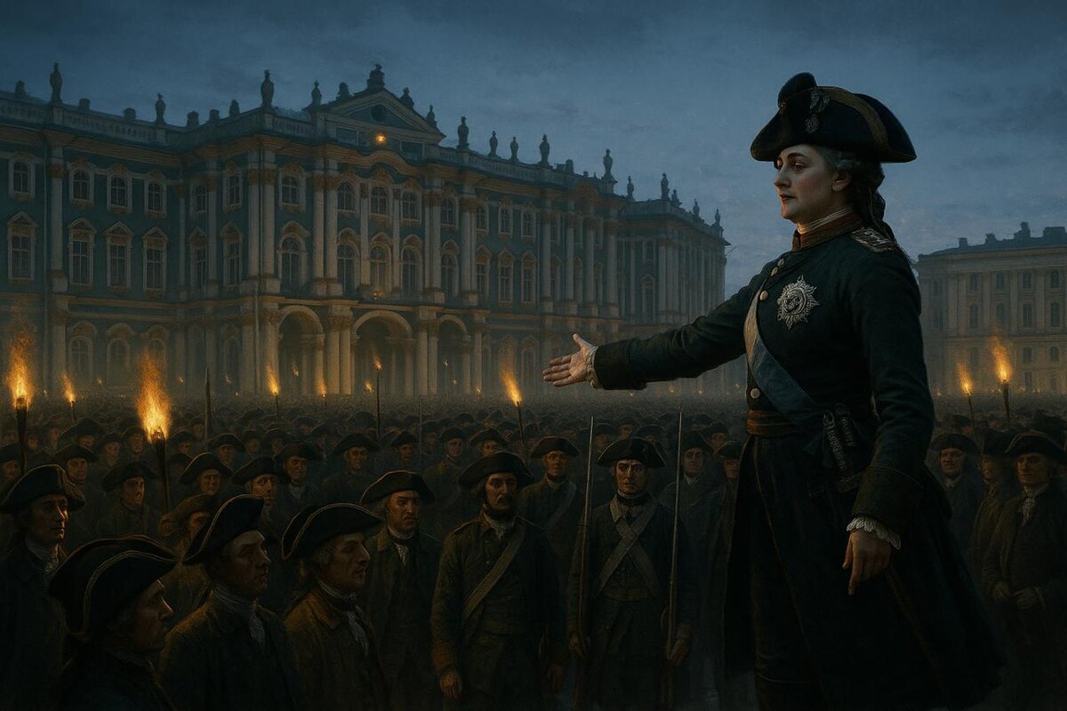С поддержкой гвардии, церкви и народной молвы (а может, просто с отличным настроением), Катерина зашла в Зимний дворец как жена, а вышла оттуда уже Матушка-Императрица. Ей даже коронацию отложили на потом — настолько всё шло по плану. Петра отправили в "отпуск", из которого он уже не вернулся. Совсем.