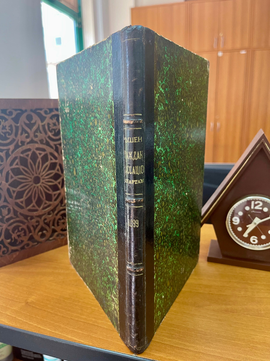 РЕШЕНIЯ ГРАЖДАНСКАГО КАССАЦIОННОГО ДЕПАРТАМЕНТА ПРАВИТЕЛЬСТВУЮЩАГО СЕНАТА. За 1899 годъ. Екатеринославъ. Типографiя Книгоиздательства Л. М. Ротенберга. 1905 г. 264 с. Изданiе неофицiальное. Составной переплет с мраморной бумагой и кожаным корешком с бинтами и золотым тиснением, увеличенный (18х26,7 см) формат. В сборнике «Решений…» за 1899 опубликованы вынесенные Кассационным департаментом постановления по кассационным жалобам по гражданским делам. По каждому делу приводится описание его фактической стороны, описывается ход судебного процесса, дается оценка вынесенному приговору. Данные постановления имели руководящее значение для нижестоящих судов в части толкования законодательных актов. Сборники «Решений…» являются важнейшим памятником истории судопроизводства и законодательства Российской Империи, а также судебной и адвокатской практики. Попадаются очень любопытные дела, характеризующие образ жизни России XIX века. 1. На форзаце владельческий штемпель: Присяжный Поверенный Николай