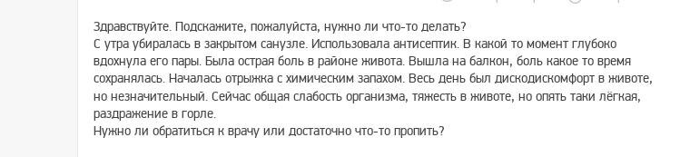 Ответы на вопросы: пары антисептика попали в бронхи (легкие), страшно ли?