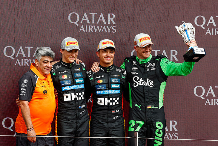 4. После финиша Нико не взял шлем в комнату ожидания перед подиумом – он даже не знал, что это вообще нужно сделать. Благо, помог победитель этапа Ландо Норрис.