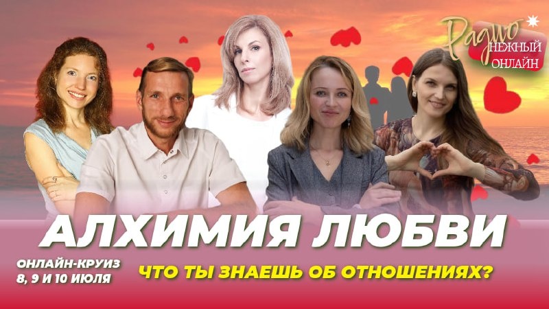 Круиз вдоль берегов любви продолжается 🛳💖 Вы с нами? Это прекрасно, ведь сегодня будет много интересного! Потому что с вами в эфире ➡️ 13:00 Ольга Пушкина ⭐️ Эфир: ЗАВИСИМОСТЬ: как освободиться от болезненных чувств, которые привязывают вас друг к другу ➡️ 13:30 Елена Батурина ⭐️ Эфир: История о том, как отношения обрушили бизнес и помогли создать империю ➡️ 14:00 Алексей Вагин ⭐️ Эфир: ТОЧКА ПРИТЯЖЕНИЯ: как отношения с собой формируют отношения с миром и партнером ➡️ 14:30 Эдуард Метёлкин ⭐️ Эфир: Любить безусловно... Взгляд многодетного отца 6 детей ➡️ 15:00 Наталия Филиди ⭐️ Эфир: Золотой век. Отношения в паре ✨✨✨✨✨✨✨✨✨✨ ⏰ СЕГОДНЯ В 13:00 в нашем канале. Регистрируйтесь и получайте подарки от наших экспертов! ⬇️⬇️⬇️⬇️⬇️ ЗАРЕГИСТРИРОВАТЬСЯ