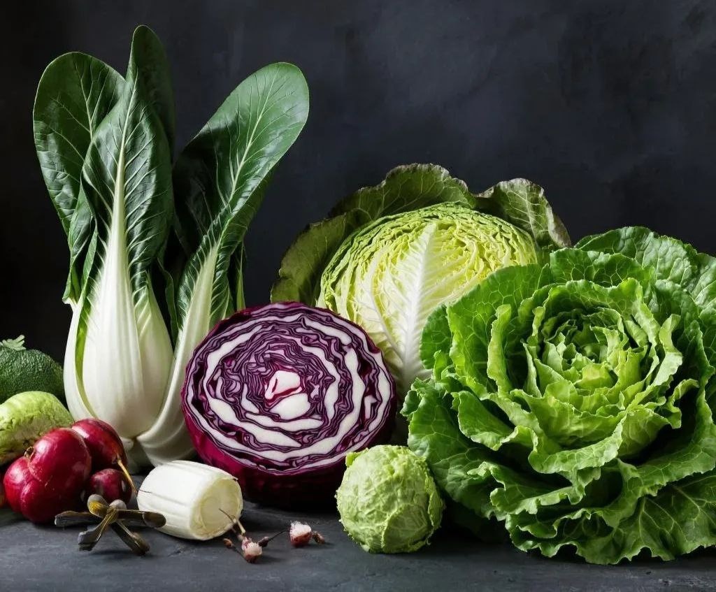 Салат айсберг, салат в горшочке, белокочанная капуста, пекинская капуста.
