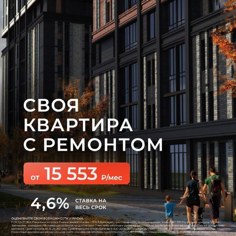 Своя квартира со стильным ремонтом доступна всего от 15 553 рублей в месяц.