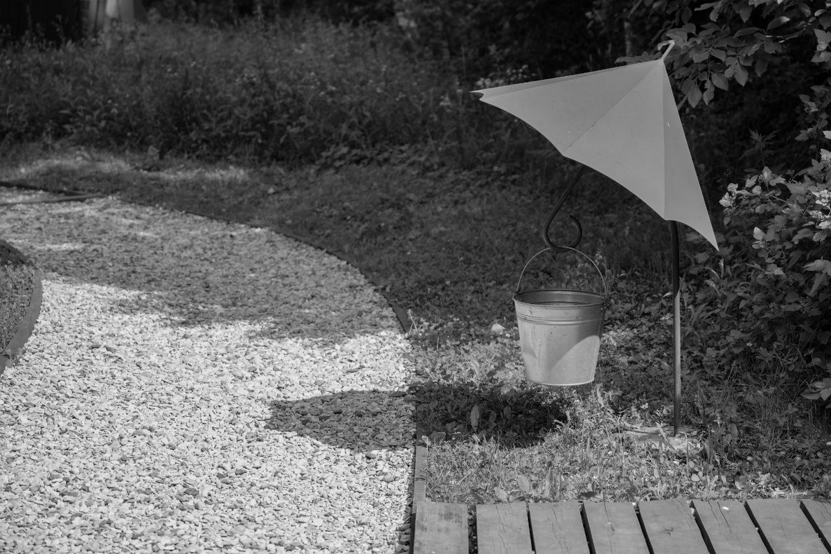 Даже ведру жарко и оно прячется от солнца под зонтиком 😁