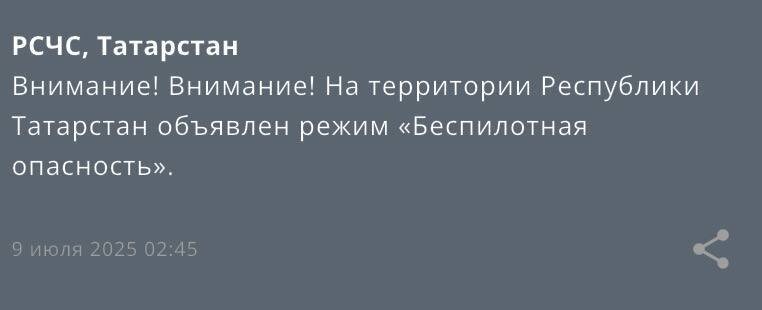❗️ Режим «Беспилотная опасность» ввели ночью в Татарстане
