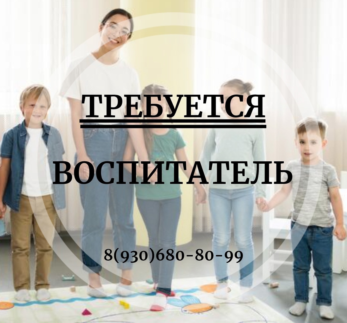 В частное учреждение на постоянную работу требуется ВОСПИТАТЕЛЬ Тел. 8(930)680-80-99