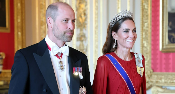 Виндзорский замок 8 июля 2025 года превратился в арену королевского спектакля. Принцесса Уэльская Кейт, отсутствовавшая на государственных банкетах почти два года, наконец появилась на публике. Поводом стал приём президента Франции и его супруги, организованный королём и королевой. После диагноза рака в 2024 году и излечения в начале 2025-го, 43-летняя Кейт вернулась в свет, последний раз мелькав на подобном событии в ноябре 2023 года во время визита президента Южной Кореи. Её возвращение стало главным событием вечера, затмив даже дипломатические ноты. Кейт ворвалась в зал Святого Георгия в красном платье с накидкой от Givenchy, созданном Сарой Бертон, и тиаре "Узел любви" с бриллиантами и жемчугом. Этот наряд, дополненный идеальными реверансами — целых трижды за вечер, — подчеркнул её статус. Рядом принц Уильям в белом галстуке с орденами Подвязки и Святого Георгия выглядел как верный спутник, изображая из себя государственного мужа. Королева выбрала шёлковое платье цвета слоновой кос