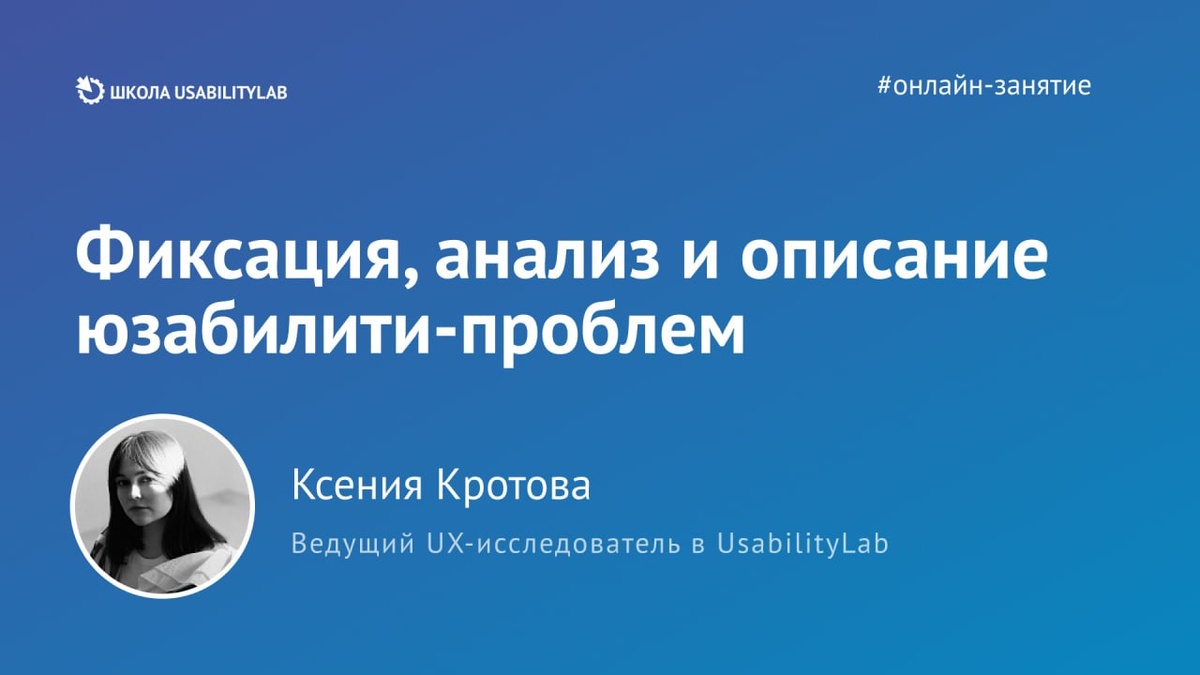 Приглашаем вас на онлайн-занятие «Фиксация, анализ и описание юзабилити-проблем», которое проведёт Ксения Кротова, ведущий UX-исследователь