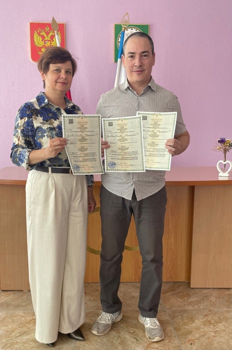 Калтасы ёросысь Краснохолмскийын улӥсь Руслан но Александра Габитовъёслэн семьязы куинь нылъёслы узырмиз. Фото: https://www.bashinform.ru/news/social/2025-07-08/v-semie-gabitovyh-iz-bashkirii-rodilas-troynya-4307101