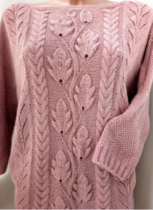 Узоры с листьями. Джемпера спицами - Украшаем джемпера ветками из листьев.