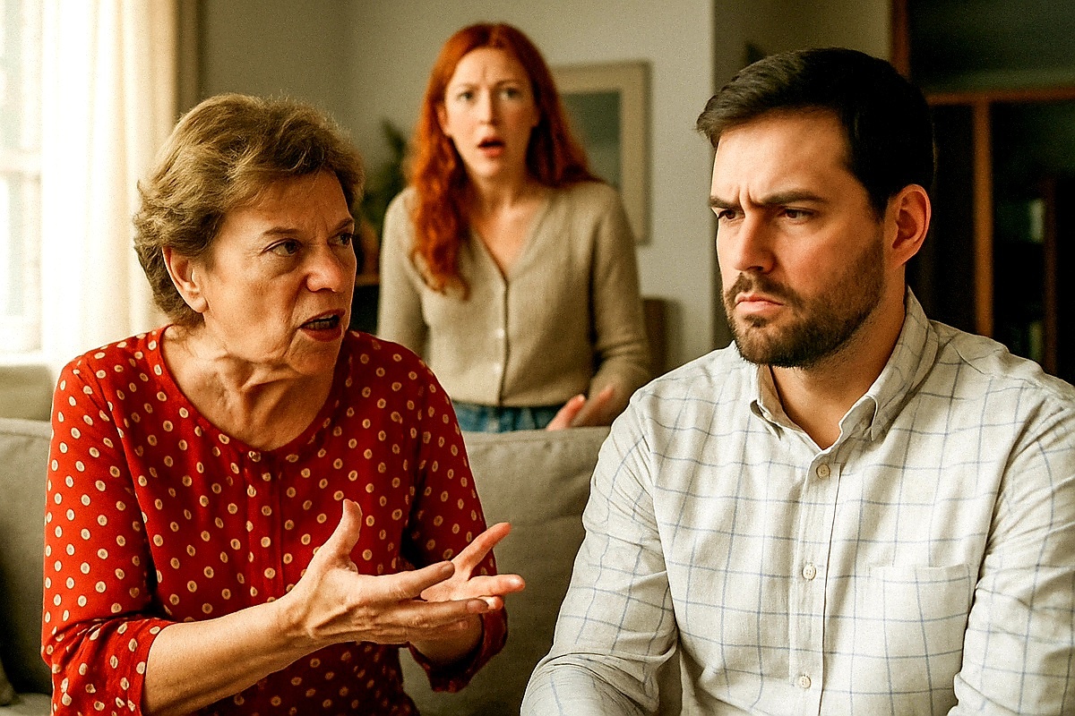 - Ну-ка, дай мне трубку, я поговорю со свекровью. И перестань горланить на всю квартиру. Вон уже красными пятнами покрылся весь.