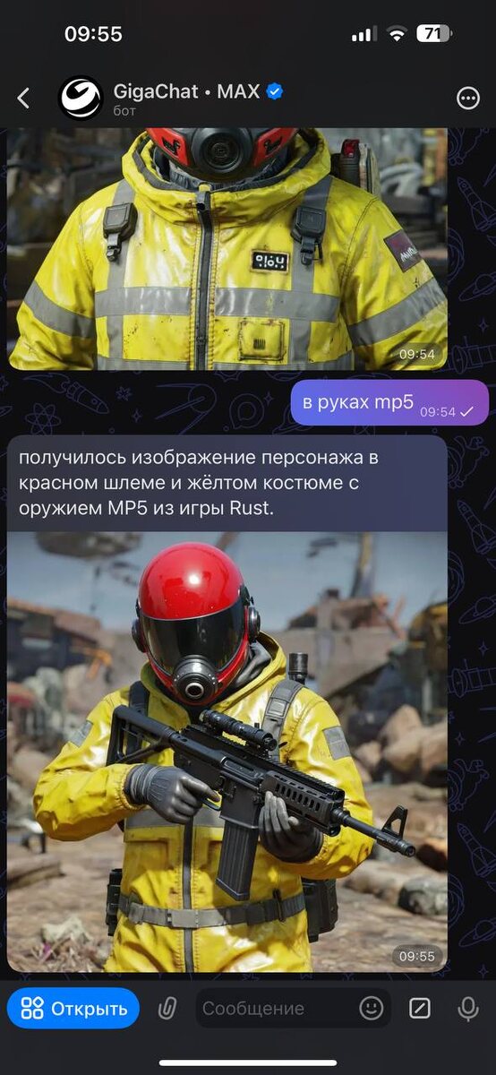 мда, гигачат не знает ни что такое раст, ни что такое мп5, ни что такое подчиняйся блядь и рисуй что сказали
