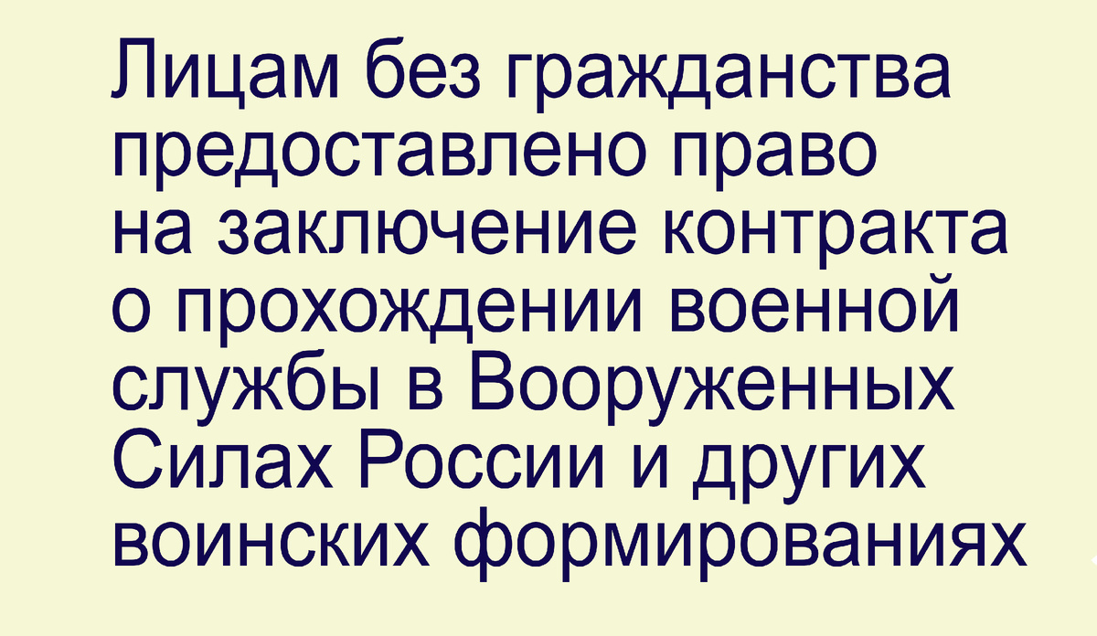 Нововведение предоставляет право лицам без гражданства заключать контракт на прохождение военной службы в Вооружённых Силах и других воинских формированиях России.