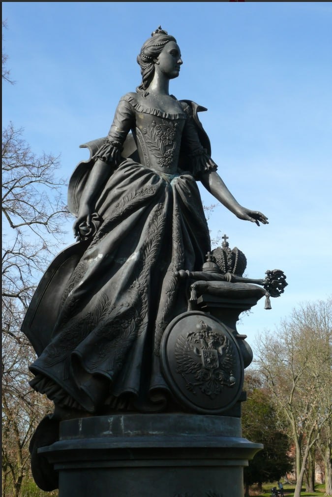 В Германии в центре города Цербст, как живая — с гордо поднятой головой, в развевающемся платье, стоит русская императрица Екатерина II.