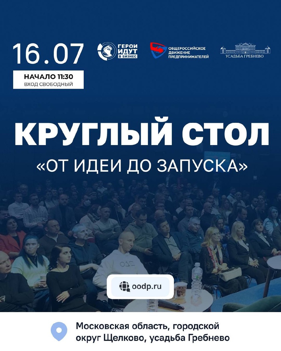 16 июля Общероссийское движение предпринимателей организует круглый стол на тему «От идеи до запуска», посвященный ключевым аспектам запуска бизнеса. Лично буду! Приезжайте, пообщаемся! Начало в 11:30. ❗️Количество мест ограничено! Регистрация по ссылке: https://clck.ru/3N7nuz - вход строго по спискам! Мероприятие предоставит участникам практические знания и рекомендации от предпринимателей, которые добились значительных успехов в своих областях. Круглый стол станет площадкой для обмена опытом и обсуждения важных вопросов, связанных с началом предпринимательской деятельности. Участники получат ценную информацию о формировании бизнес-идеи, разработке стратегии, поиске финансирования и привлечении первых клиентов. 📍Место проведения: Московская область, городской округ Щелково, усадьба Гребнево, банкетный зал «Каретный двор» ✅ АНДРЕЙ КОВАЛЕВ | reformator.ru | oodp.ru