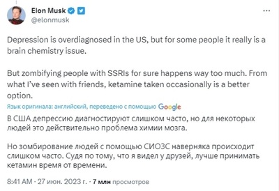 В каком виде им "расширяет сознание" Илон Маск история, пока, умалчивает....