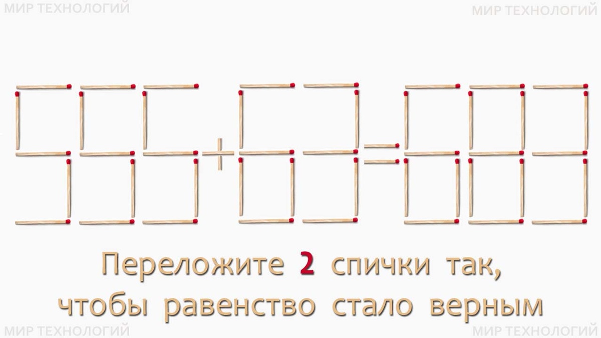 Задача со спичками № 573 (555+63=683) - переложите 2 спички так, чтобы равенство стало верным