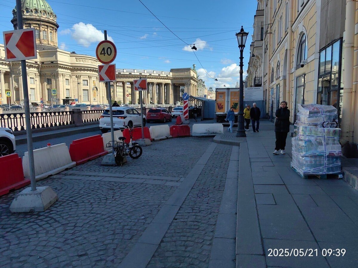 С 11 июля 2025 года по 14 октября 2026 года будет ограничено движение на набережной канала Грибоедова от улицы Ломоносова до Невского проспекта. Об этом сообщили в пресс-службе ГАТИ. В районе дома 24 продолжается реконструкция нежилого здания бывших касс продажи билетов под гостиничный комплекс. Для обеспечения проведения работ будет организована пешеходная галерея. Это здание не считается памятником культурного наследия, так как оно подвергалось нескольким реконструкциям с момента своего основания в первой половине XIX века. Первая перестройка была выполнена архитекторами Михаилом Петерсоном и Павлом Сюзором в 1884 году. В 1970-х годах здание трансформировалось из торгового пассажа с галереей, соединяющей набережную канала Грибоедова и Думскую улицу, в билетные кассы Центрального железнодорожного бюро Октябрьской железной дороги. Центральная галерея этого здания была использована в качестве декораций в фильме «Ирония судьбы». В 2020 году здание было продано на аукционе. Спустя четыре
