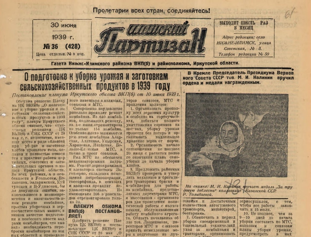 В базу данных добавлено 54 выпуска газеты «Илимский партизан», органа Нижнеилимского райкома ВКП(б) за 1939 год