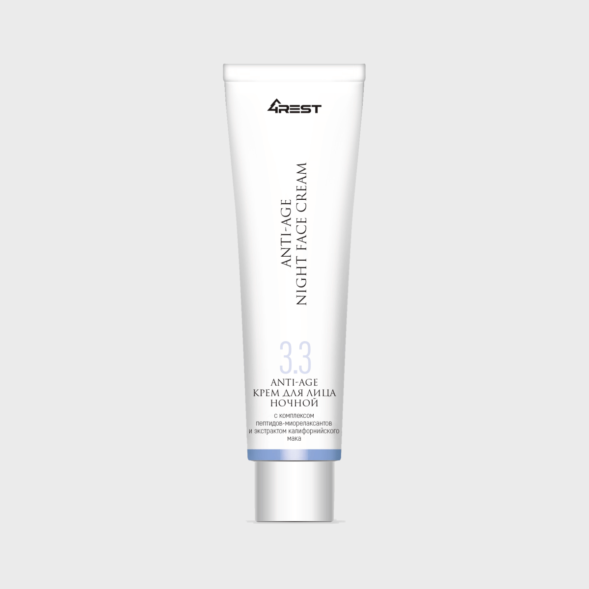 Пусть ваша кожа отдыхает и обновляется вместе с ночным anti-age кремом от 4REST. Его продуманная формула заботится о вашей коже именно тогда, когда она лучше всего воспринимает уход. 1. Пептид Argireline — альтернатива ботоксу, расслабляет мимические мышцы, смягчая заломы и предотвращая появление новых морщин. 2. Экстракт розеллы — насыщает влагой, восстанавливает защитные функции кожи и помогает сохранить её свежесть. 3. Масла примулы вечерней, арганы, гранатовой косточки и камелии — питают, восстанавливают и придают коже эластичность. 4. Сквалан — удерживает влагу, укрепляет липидный барьер, делает кожу мягкой и гладкой. 5. Гидролат липы — снимает раздражения и успокаивает кожу после насыщенного дня. 6. Экстракт тасманского перца — уменьшает воспаления и покраснения, возвращая коже ровный и здоровый тон. Крем идеально подходит для любого типа кожи, особенно если заметны первые признаки увядания или тусклости. Как использовать? Наносите вечером на очищенную кожу лица и шеи, мягко ра