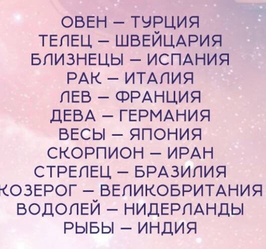 Если бы знаки зодиака были страной. Вот такой расклад.
