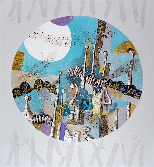 Художник создаёт пространство, в котором реальность становится иллюзорной, а иллюзия обретает плоть. На картине - лицо человека, погружённого в дрёму, находящегося в промежуточном состоянии — между бодрствованием и забытьем.Здесь человеческое сознание покидает чёткие границы, стираясь в образах леса. Здесь нет окончательной формы, нет чёткости — всё течёт и смешивается. Мы чувствуем, что дерево мыслей и фантазий в любой момент может превратиться в звёздное небо или исчезнуть, оставив лишь пустоту. Цветущие деревья становятся метафорой связи между внутренним «я» и коллективным бессознательным.Художнику удаётся выразить то, что чаще всего ускользает от слов, — переходное состояние сознания, зыбкое ощущение реальности/нереальности и неизведанное нечто.