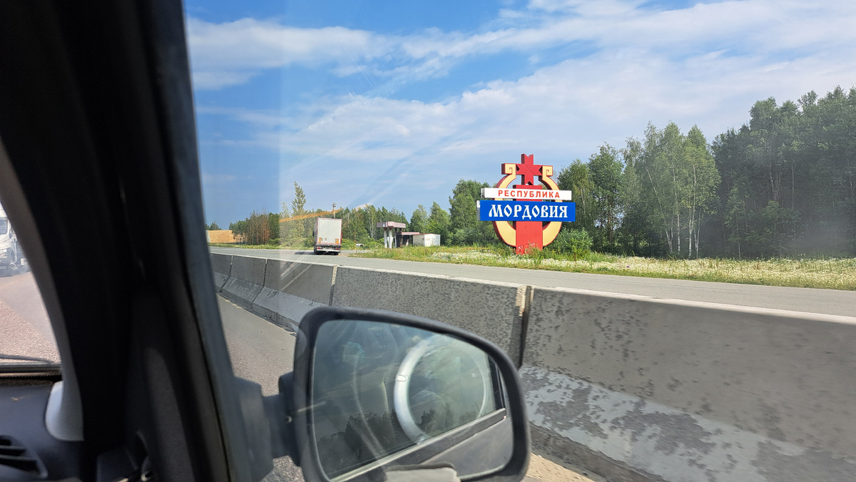 Трасса по которой мы ехали на удивление была свободной, машин мало, покрытие новое, честно сказать, я боялась ехать в неизвестность, она меня не манит, а пугает бесконечными потоками машин, но всё оказалось именно так, как я хотела: я не сидела вцепившись в кресло, а любовалась просторами Мордовии.
